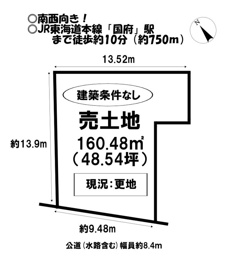 | 土地面積 | 実160.48㎡(48.54坪) | 接道 | 南西側(公道)幅 約5.0m 間口 約9.48m |